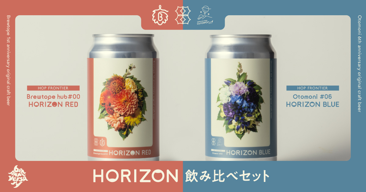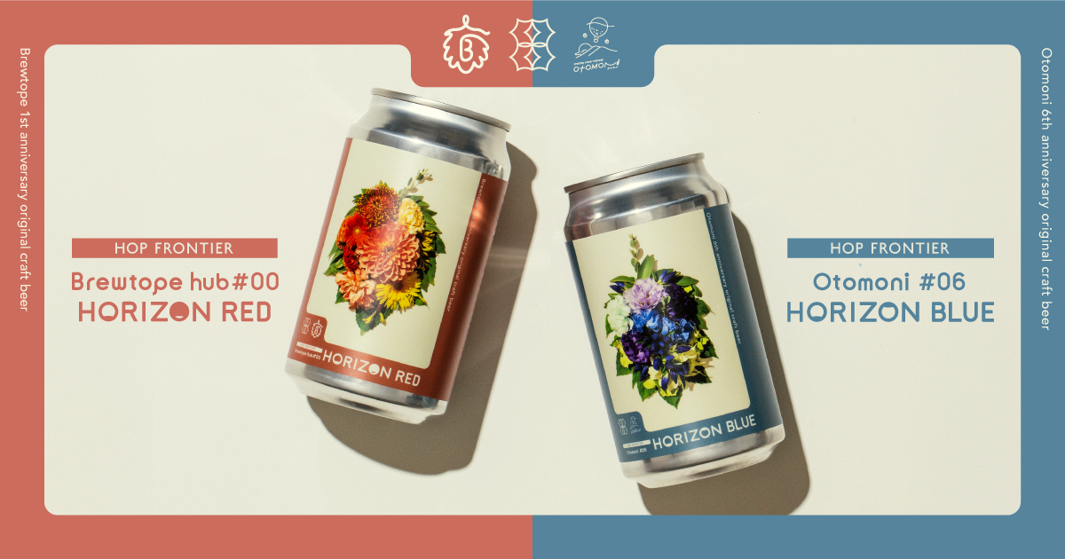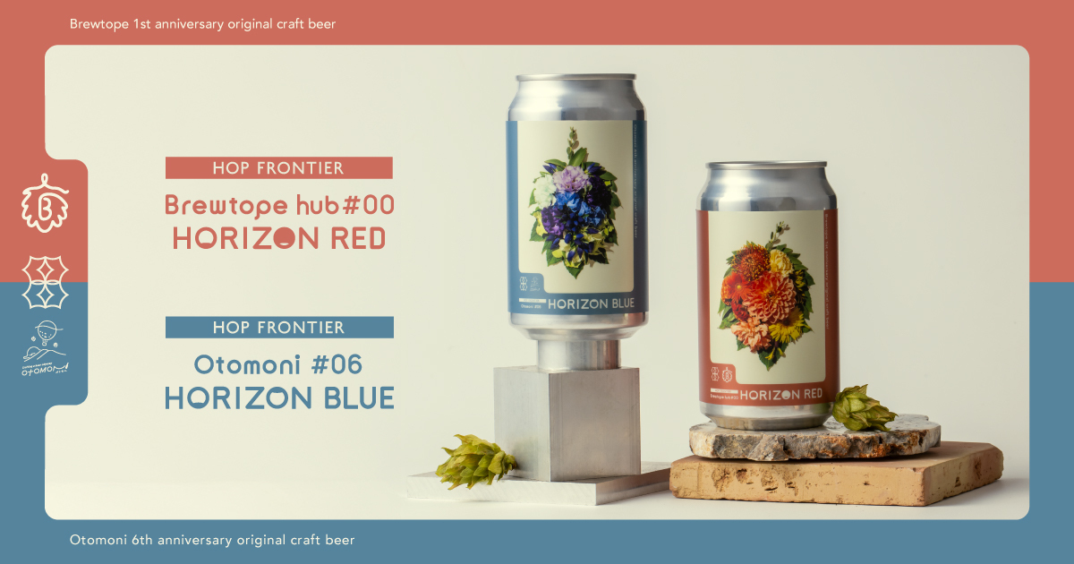 いつも支えてくださっている皆さまへ感謝と、これからへの想いを込めて……オトモニ史上初となる、オリジナルビール2銘柄「Far Yeast Brewing HOP FRONTIER Brewtope hub #00 HORIZON RED」と「Far Yeast Brewing HOP FRONTIER Otomoni #06 HORIZON BLUE」を同時リリースいたしました。